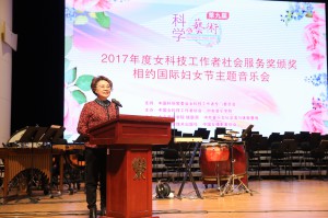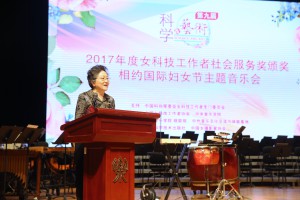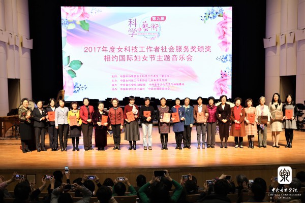 2018年3月8日晚,2017年度女科技工作者社会服务奖颁奖暨第九届科学与艺术相约国际妇女节主题音乐会在中央音乐学院歌剧音乐厅举行。活动由中国科协常委会女科技工作者专门委员会支持,由中国女科技工作者协会、中央音乐学院主办,中央音乐学院统联部、中外音乐文化交流与体验基地承办,中国科学技术出版社中国女摄影家协会协办。