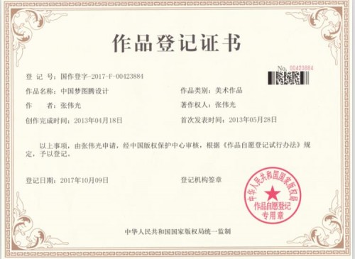 张雄舰(伟光)获得的中国梦图腾国家版权证书