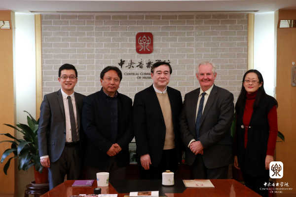 随后宾主双方介绍了各自学校的历史、办学规模、办学特色、学术活动、知名校友、对外交流等情况。俞峰院长介绍了近期我校举办的第一届北京肖邦国际青少年钢琴比赛等几个大型学术活动及筹建中央音乐学院交响乐团的情况,尤其就发起“世界著名音乐学院北京联盟”,共同推动教学发展的构想,与科林•劳森院长交换了看法。劳森院长盛赞俞院长创建国际一流教学交流平台的高端战略和前瞻性的国际化视野,表示英国皇家音乐学院十分重视拓展与中国的国际合作和发展中英学术交流活动,非常欢迎俞峰院长访问英国皇家音乐学院。