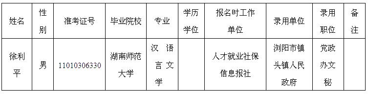 依据中共湖南省委组织部、湖南省人力资源和社会保障厅、湖南省公务员局《湖南省2017年考试录用公务员公告》精力,经考试、体检、考核等程序,我市拟录用徐利平同志为公务员,现予以公示。如对公示人选有异议,请于公示期内提出,过时不予受理。