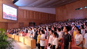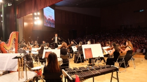首场音乐会于2017年9月19日江苏南京中国药科大学举行。由于乘坐航班延误,下午近三时才抵达中国药科大学。临近剧场时恰好看到十几个药科大学学生在门外静静地听中央音乐学院交响乐团严谨热情认真的排练。我不忍心打扰他们,悄悄在后面与他们站在了一起,犹如一个老师带领青年学生前来观摩。哈,当了一次旁听者。