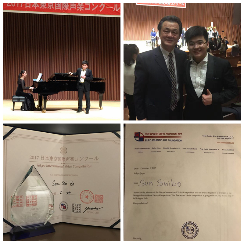 近日,2017东京国际声乐比赛日前在日本东京落下帷幕,本校声乐歌剧系本科生孙诗博在这次比赛中,斩获了本科生歌剧咏叹调组第一名的成绩,并获得了直接参与2018年“意大利博洛尼亚国际声乐比赛”决赛的资格。
