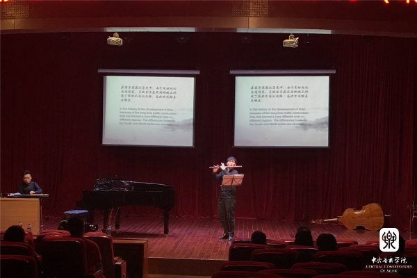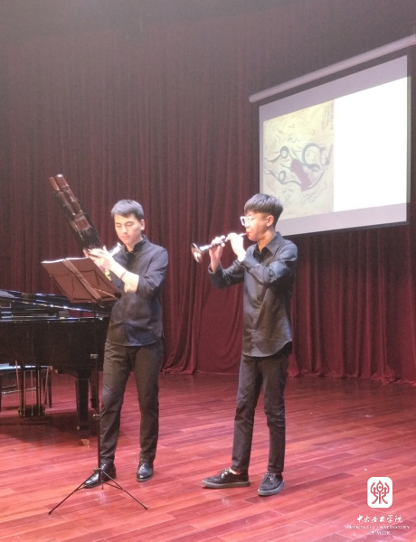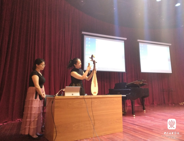 《国际音乐教育与传播》是由音孔办及基地面向我校本科及研究生开设的学分选修课,旨在提升学生对国外接受者教授、展示和介绍中国音乐文化综合能力的创新课程。当晚以“与世界分享中国”为主题的中国音乐文化体验艺术工作坊,由我校音乐教育学院、音乐学系、民乐系、管弦系、声歌系、提琴制作研究中心等不同专业的24名选修课同学担任主讲,以理论与实践相结合的双重展示模式,运用历史法、文献法、研究比较法等方法以及中英双语形式,向观众、校内师生,介绍所学专业的历史与特点,以及梳理理论学科的实用性与学术性;随后以各自专业为基点,分组展示了多首精彩作品。作为旨在培养学生们面向国际开展中国音乐传播与教学的能力,拓展同学们的国际视野和国际交往能力的“实战型”课程,当晚工作坊的最大亮点在于交流、互动环节的良好进行,学生们面对不同国籍、不同专业留学生们的提问,以举例、对比的答案,言简意赅地依次解答了大家心中对中国音乐的疑惑,尤其是舞蹈与扬琴的互动环节更是引起两次高潮,台上主讲人们以高效的教学方法,让留学生们通过近距离现场体验,实际感受中国音乐的韵律之美。